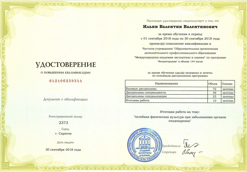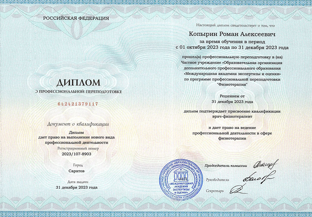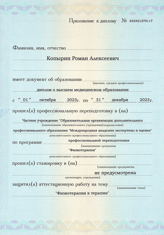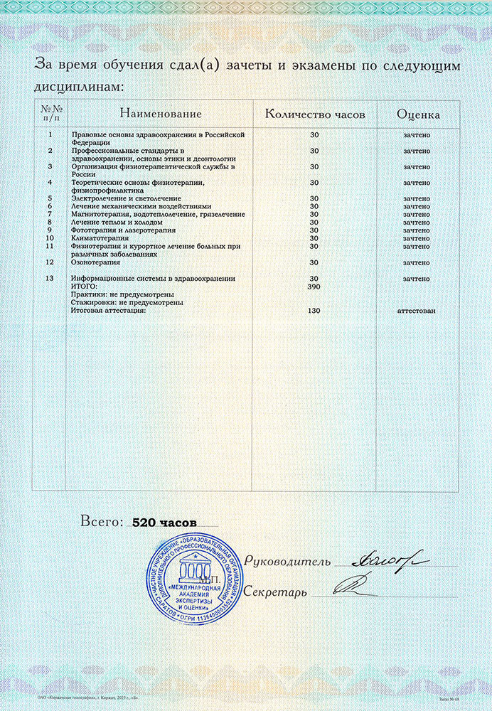 ЧУ «ООДПО «Международная Академия Экспертизы и Оценки» осуществляет переподготовку физиотерапевтов.